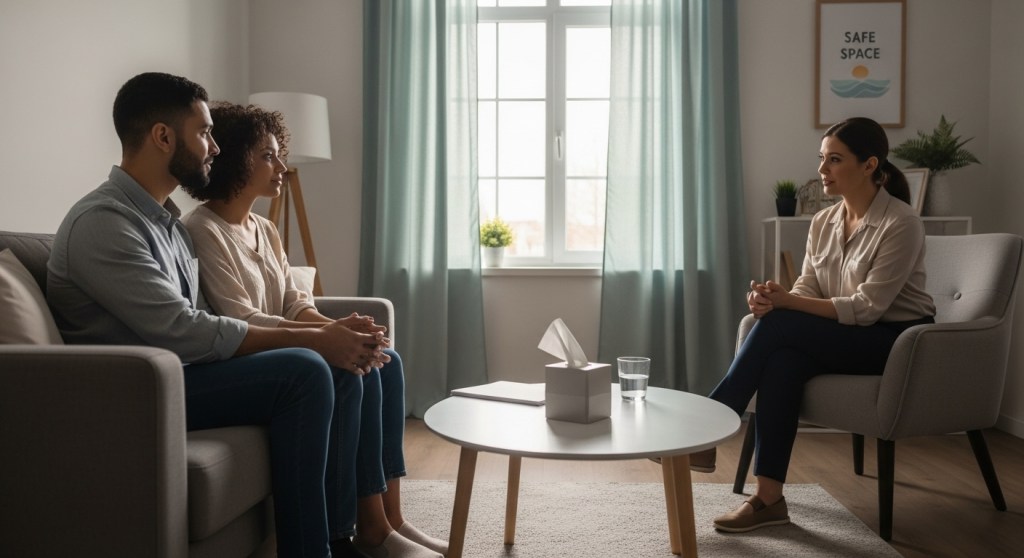 Each session is collaborative — you’ll both be guided toward shared goals, not blamed or criticized